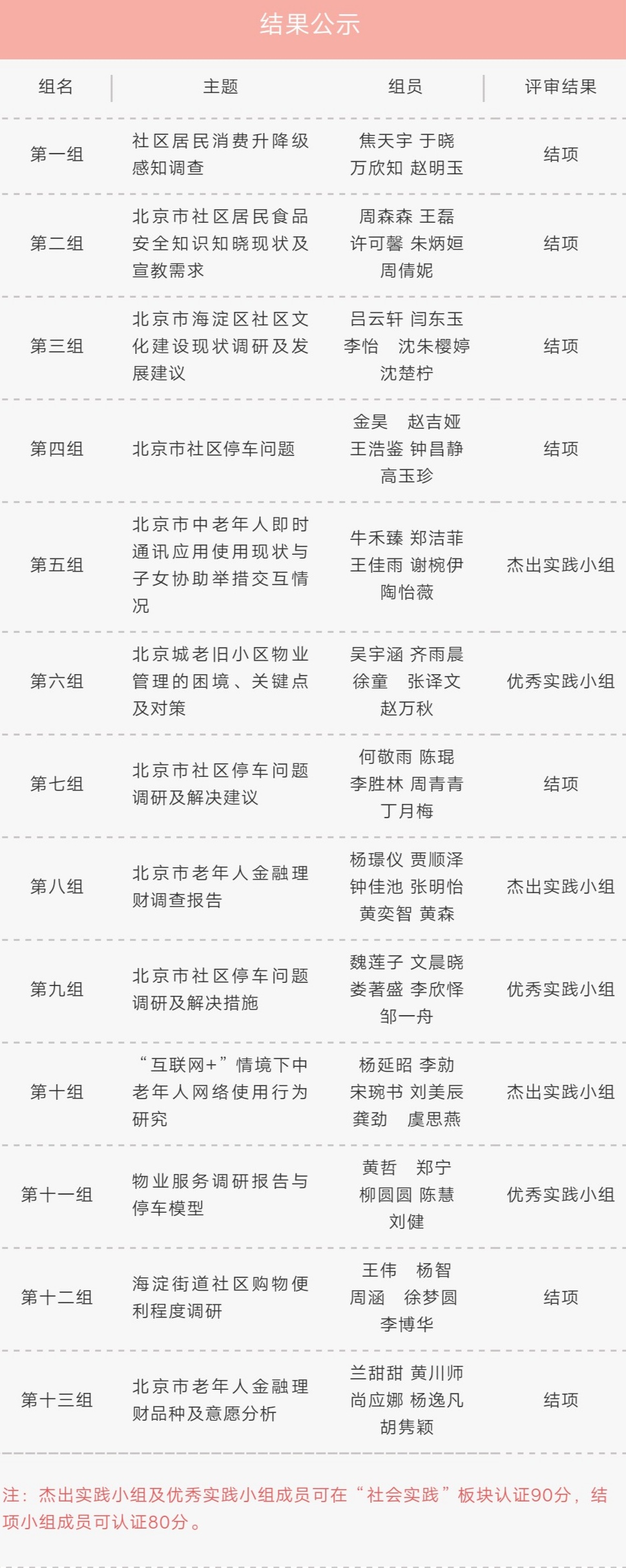 色花堂 2018年秋季学期 “民声北京”社区调研社会实践项目结项评优结果公示