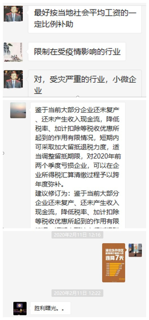 2020年2月12日,色花堂 应用金融系教师党支部开展“抗击疫情,党员先行”线上主题活动。在新型冠状病毒感染的肺炎疫情防控关键时期,切实动员广大党员在疫情防控阻击战中做表率争先锋。支部党员认真学习材料及学习强国相关内容后,在微信群中踊跃发言,积极讨论,坚定了战胜疫情的决心。