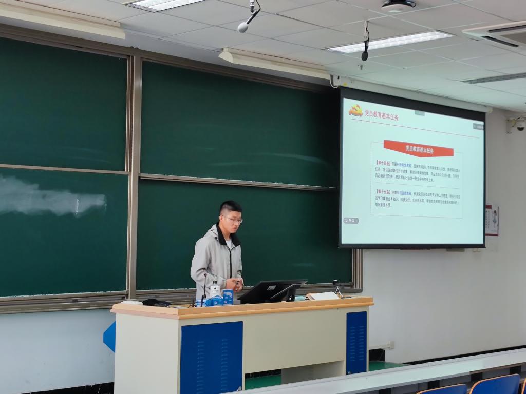为了更好地促进支部的党员发展工作,本次主题党日活动安排发展对象代表贺舒显同志为参会的发展对象和入党积极分子分享校党校学习和入党心得。贺舒显同志认真分享了自己入党的心得体会,以及党校学习中理论学习、军事训练和志愿服务的三部分内容,积极为支部内入党积极分子答疑解惑。