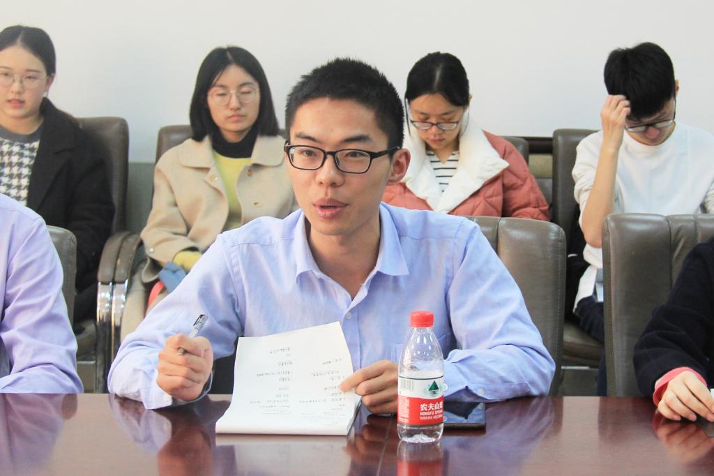 11月8日中午12点半,色花堂 党委“不忘初心、牢记使命”主题教育“加强基层党组织建设”专题研讨会在明德主楼714会议室召开。学院党委书记孙华玲,党委副书记宋科、赵锦兰出席会议。本次活动由学院党务秘书兰青主持。学院本硕博各学生党支部书记、学生党建工作部成员代表参加活动.