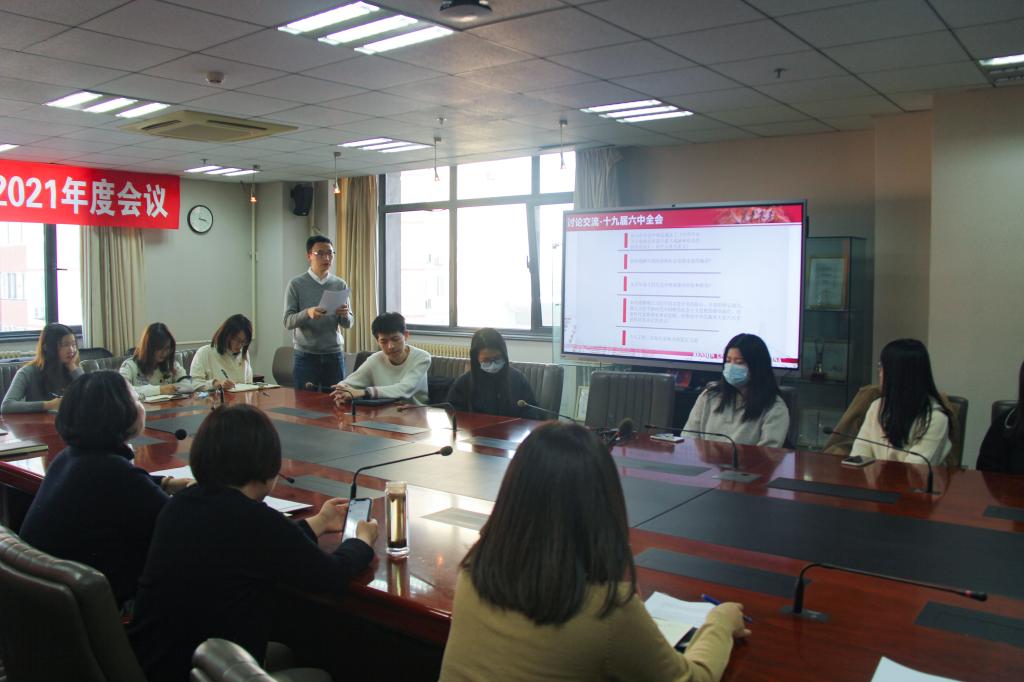 行政第一党支部副书记付朋领学党的十九届六中全会精神。付朋借助全会新闻发布会视频,围绕《中共中央关于党的百年奋斗重大成就和历史经验的决议》,从“两个确立”“三个需要”“四个成就”“五大历史意义”“十大经验”等五个方面,对全会精神进行了深入阐释。与会党员纷纷表示,要在国家发展新的历史方位上,把个人追求与梦想融入党和人民的事业之中,为实现下一个百年奋斗目标贡献青春力量。