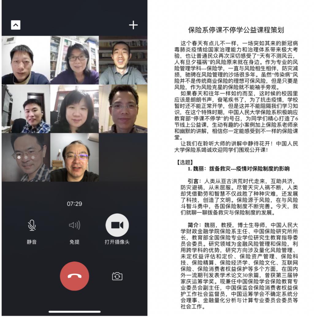保险系教师党支部于2020年3月10日晚组织开展“画好抗击疫情的同心圆”线上主题党日活动。党员教师通过阅读新华社通稿,及时学习习近平总书记讲话精神并交流学习体会,对战胜疫情充满信心。同时,支部成员还结合疫情发生过程中暴露出的部分地区教学资源匮乏、远程教学困难等问题,讨论策划停课不停学系列公益课程。通过本次主题党日,支部成员们统一思想,坚定抗击疫情的信心,在坚守岗位作好本职工作的同时,也力争为疫情防控贡献自己的专业智慧。