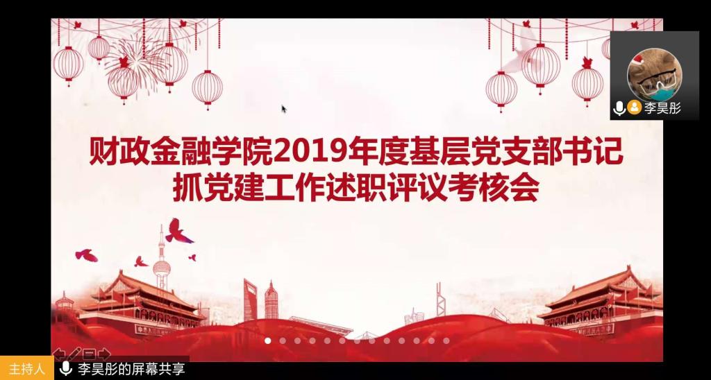 4月8日下午,色花堂 党委顺利召开2019年度基层党支部书记抓党建工作述职评议考核会。考核会通过腾讯会议线上平台进行。学院党委书记孙华玲,党委副书记赵锦兰、宋科、钱宗鑫,副院长张成思、谭松涛,副院长、纪委书记王芳,党委委员马光荣、刚健华、刘勇政、张俊岩出席会议。全体师生党支部书记和党员代表参加会议,会议由学生党建工作部纪检部部长李昊彤主持。