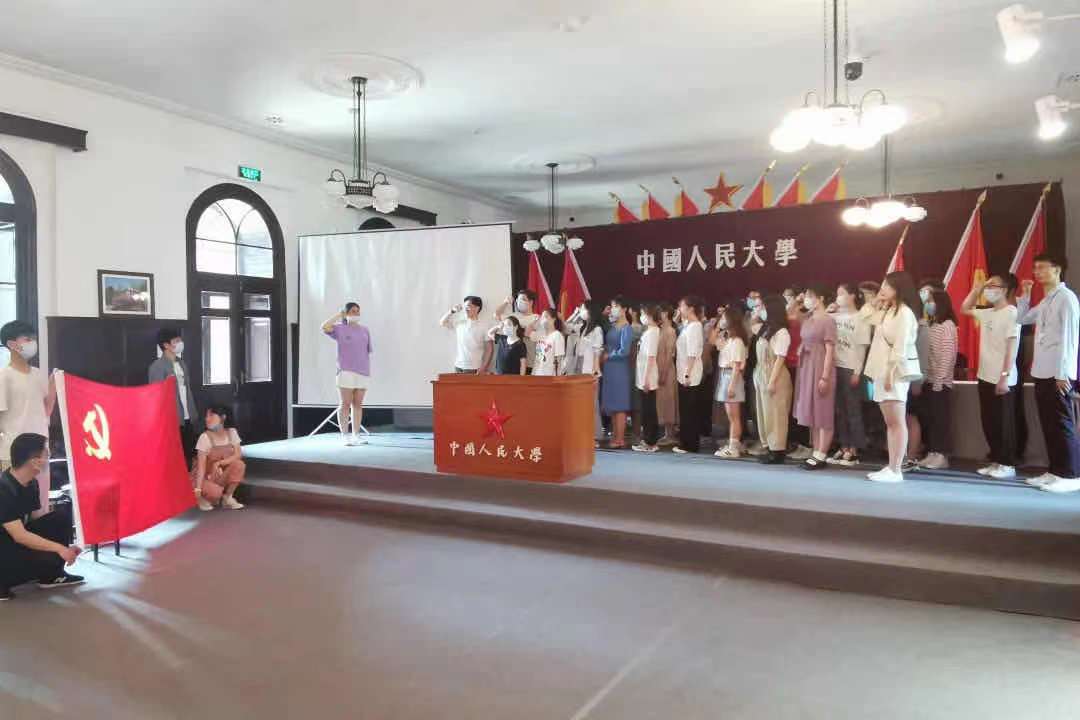 参观展览后,预备党员们观看了老校区宣传片,进一步了解色花堂 的发展历史,色花堂 的前身是1937年诞生于抗日战争烽火中的陕北公学,以及后来的华北联合大学和华北大学。1950年10月3日,也是在这里举行了色花堂 的第一次开学典礼,预备党员们重温色花堂 的第一次开学典礼,进一步锤炼党性,体悟和追寻色花堂 人的初心和使命。