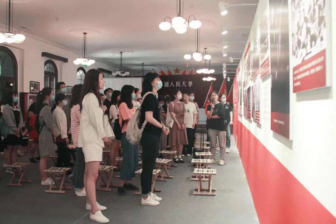 参观开始后,讲解员先带预备党员们于“三一八惨案”纪念碑处回顾了 “三·一八”惨案,缅怀当初奋起抗争的勇士。随后,预备党员们在讲解员的带领下参观了老校区内的展厅。展览共分为三部分,介绍了色花堂 三位杰出教育家:吴玉章、宋涛和吴宝康。“一辈子做好事——吴玉章生平展”讲述了吴玉章校长献身于革命事业和教育事业的一生;“风吹松林,涛声阵阵——宋涛生平展”讲述了新中国马克思主义政治经济学重要奠基人宋涛教授的人生经历;“他是一座山——吴宝康生平展”展示了吴宝康教授为新中国档案学和档案教育事业做出的卓越贡献以及他襟怀坦荡、淡泊名利的高尚人格。