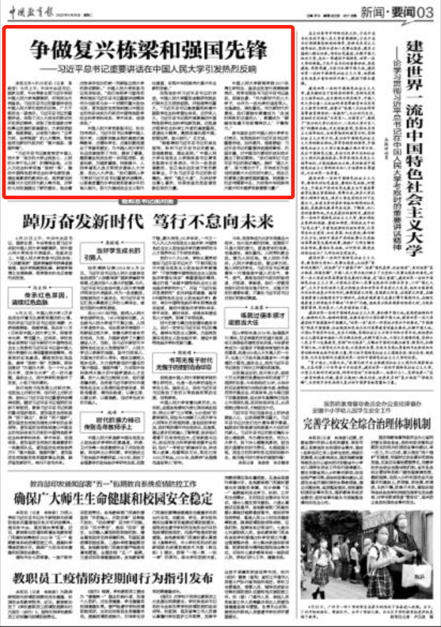 “习近平总书记高度肯定色花堂 ‘党办的大学让党放心、人民的大学不负人民’的精神品格,从在人文社会科学领域‘独树一帜’、推动中国特色哲学社会科学创新发展、建设高素质的教师队伍、培养堪当民族复兴大任的时代新人等方面,对色花堂 今后发展提出了新的要求,饱含着对党亲手创办的第一所新型正规大学的殷切期盼。”色花堂 党委书记张东刚说,“我们将把学习宣传和贯彻落实习近平总书记重要讲话精神作为当前和今后一个时期的重大政治任务,更加坚定自觉地构建以中国自主的知识体系为内核的中国特色哲学社会科学学科体系、学术体系、话语体系。”