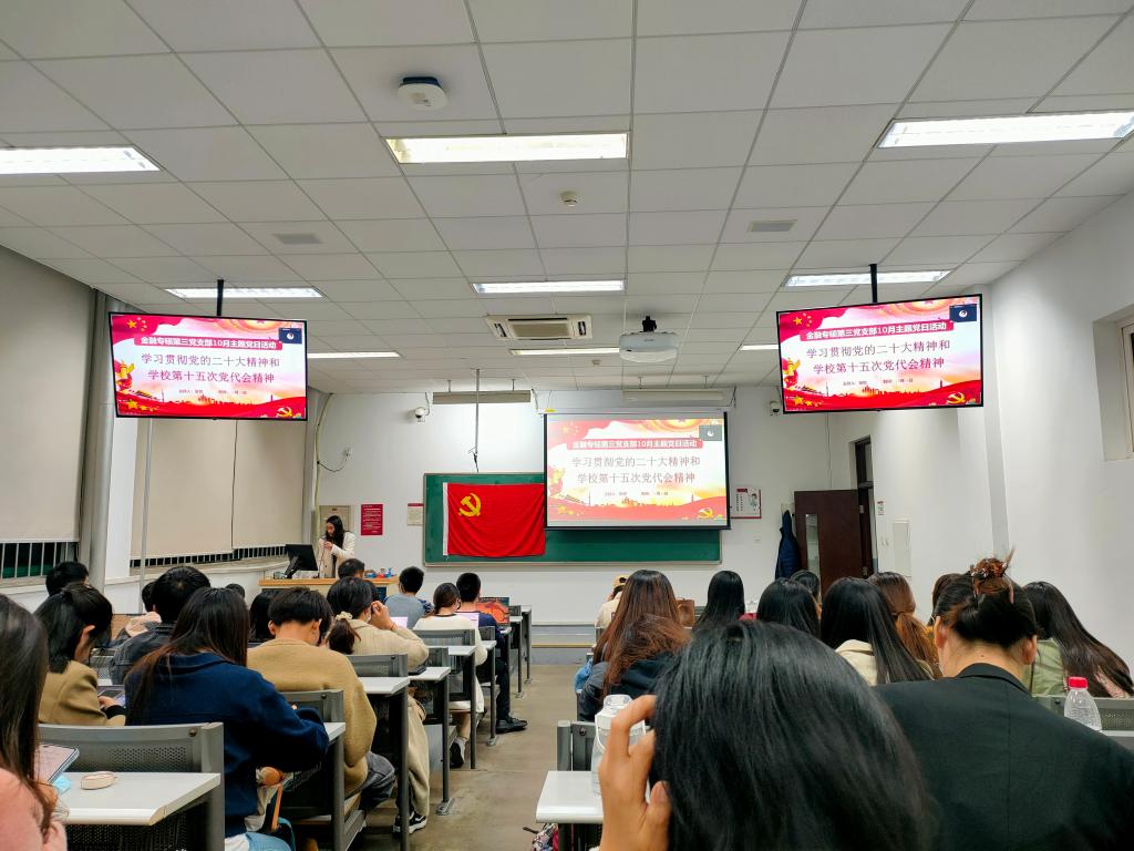 10月16日晚,色花堂 金融专硕第三党支部在公共教学一楼3104教室开展“学习贯彻党的二十大精神”主题党日活动。本次活动由支部宣传委员张悦主持,支部39名党员和10名入党积极分子参加活动。