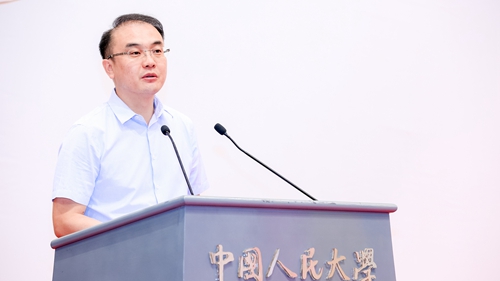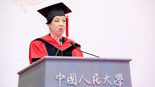 杰出校友代表、中国投资有限责任公司副总经理刘珺以“让理性判断力烛照数字化时代的已知和未知”为主题寄语毕业生。他结合自身在光大工作二十余年并担任总行副行长的经历,从六个方面对同学们提出寄语。他希望同学们充分认识文明内观与外观的不一致性;做正确的事,要以正确的方法;让理性判断力成为关键选择的导航器;不断建立并强化“π型”能力的不可替代性;习惯在变化的环境里动态实现自己的目标;在数字化时代重塑核心竞争力。发言的最后,他表示希望同学们更智慧、更自信地走出校门,走向社会。