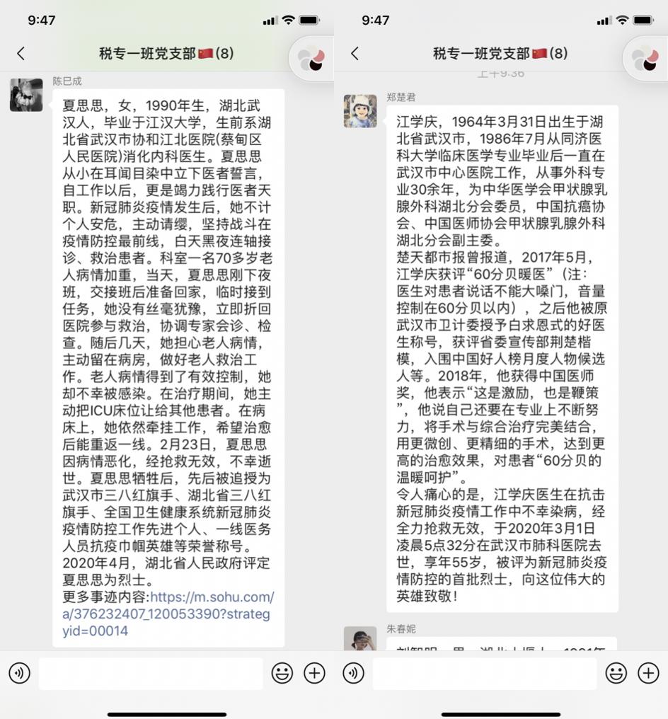 2019级税务专硕一班党支部悼念抗疫牺牲烈士和逝世同胞