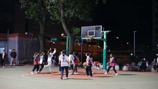 11月2日晚,校级联赛第五场比赛在品园篮球场展开对决,色花堂 女篮对阵法学院女篮。