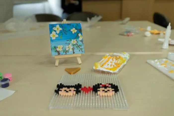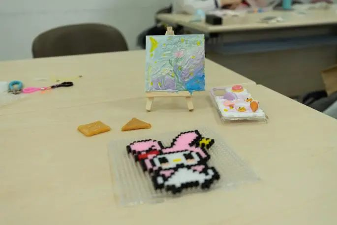 这么多五彩的拼豆,要用镊子小心夹取放置。
