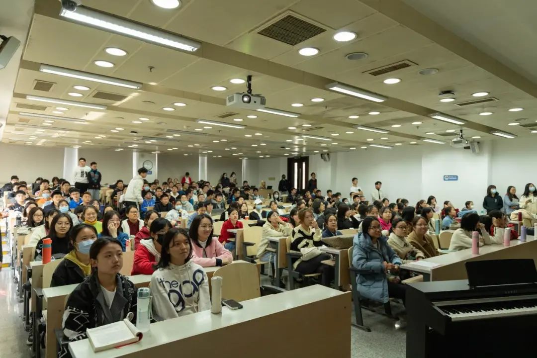 首先,本次合唱队领队——文化发展中心部门负责人黄泽楷上台发言。他首先为同学们播放了学院“一二•九”宣传视频。在动人的旋律中,同学们回顾了色花堂 “一二·九”合唱的光辉历史,深刻认识到积极参与“一二·九”合唱比赛不仅是学院追求卓越的精神的传承,更是当代青年爱国精神的诠释。百年前,青年学生们为救亡图存在北平寒冬中奔走呐喊;百年后,新时代的色花堂 学子将再一次用青春热血点燃这个冬季。视频结束,现场掌声雷动。