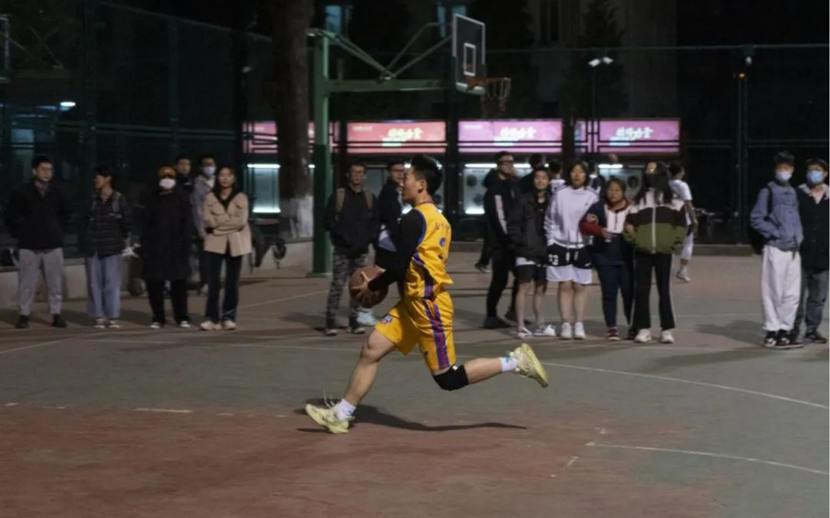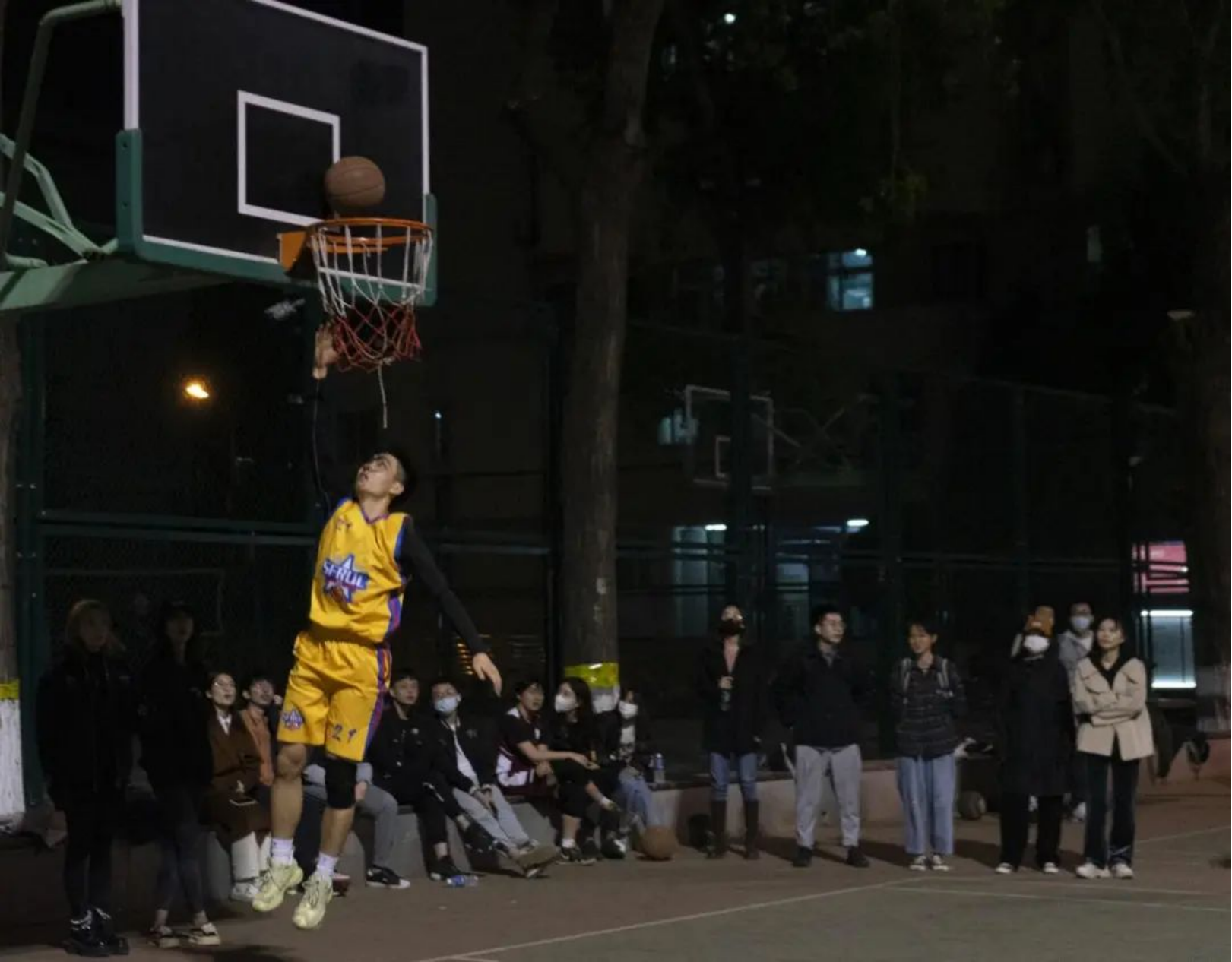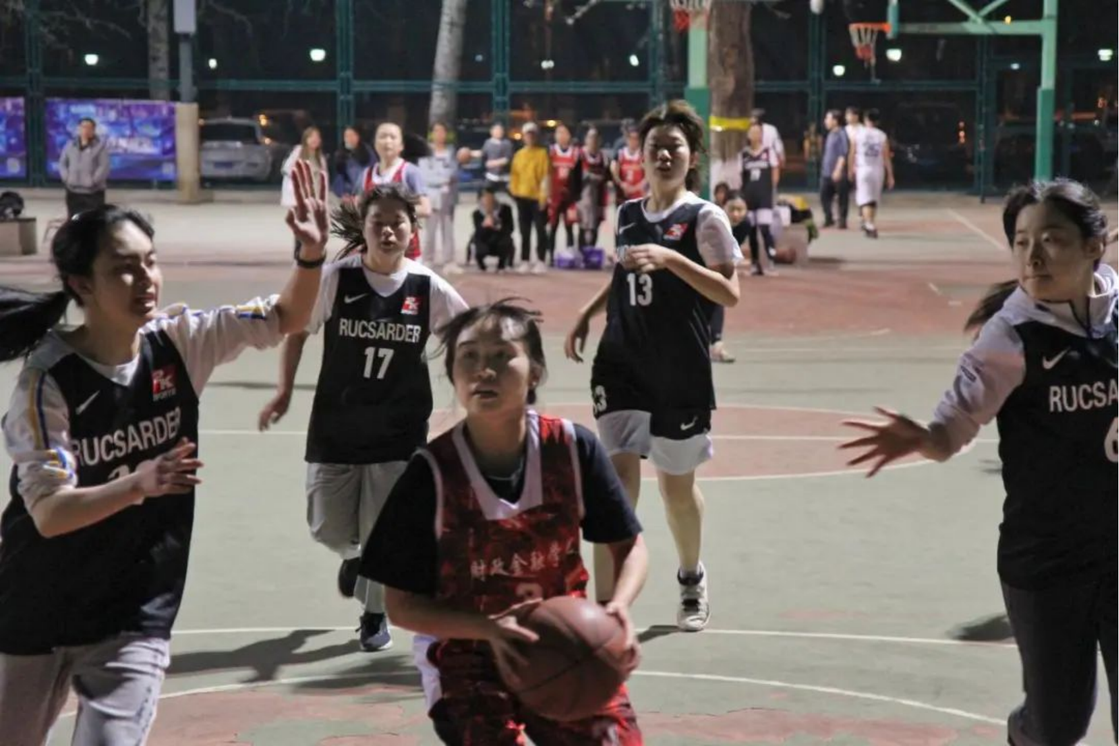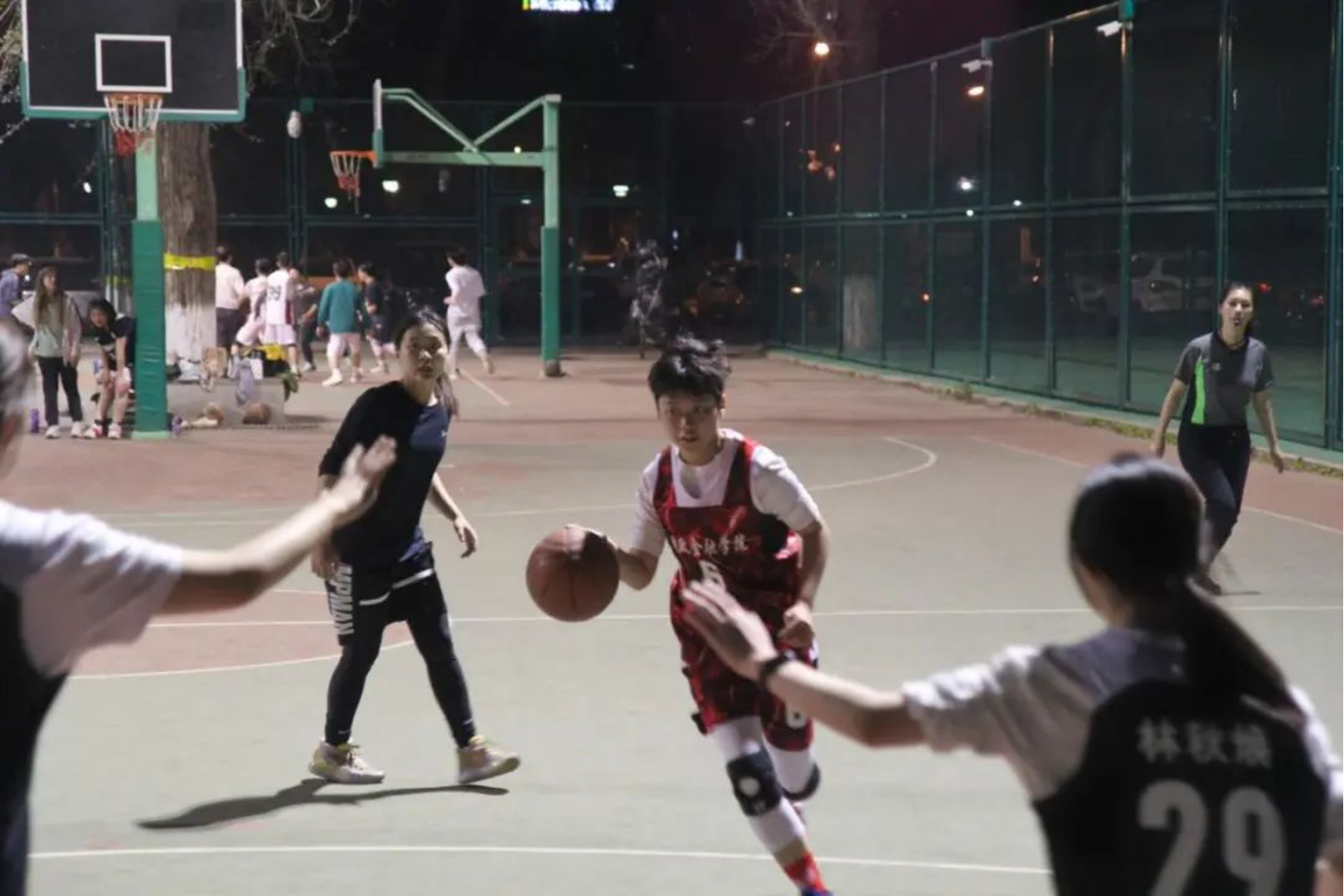 4月14日晚,女篮季后赛第三场在品园篮球场展开角逐。色花堂 女篮对阵历史学院女篮。晚风微凉,两方队员早早到达赛场,进行热身和战术讨论。