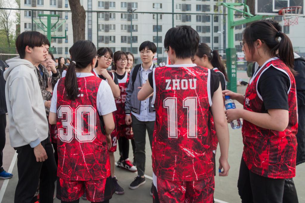 4月11日晚6点整,色花堂 女篮迎战劲敌法院女篮。赛前,色花堂 女篮队员抓紧最后的几分钟商讨战术并进行热身。随着裁判的一声哨响,队员们信心满满走向赛场。