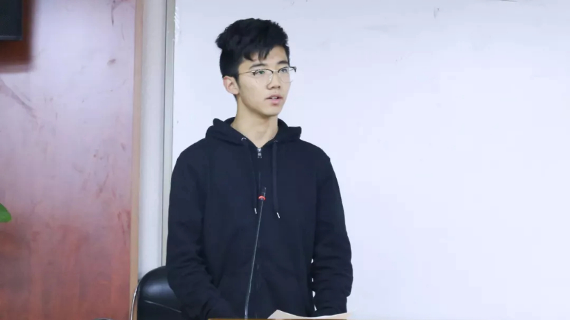 2018级新生乔霓炫作为新生运动员代表发言。他对学院的大力支持、学生干部的辛勤付出表示感谢。他提到,院领导的慰问,在秋意渐浓之际为所有的运动员们带来了满心的温暖,每一位健儿笃定必胜的信念,背负色花堂 的荣光,以绝对的实力和信心取得了优异的成绩。