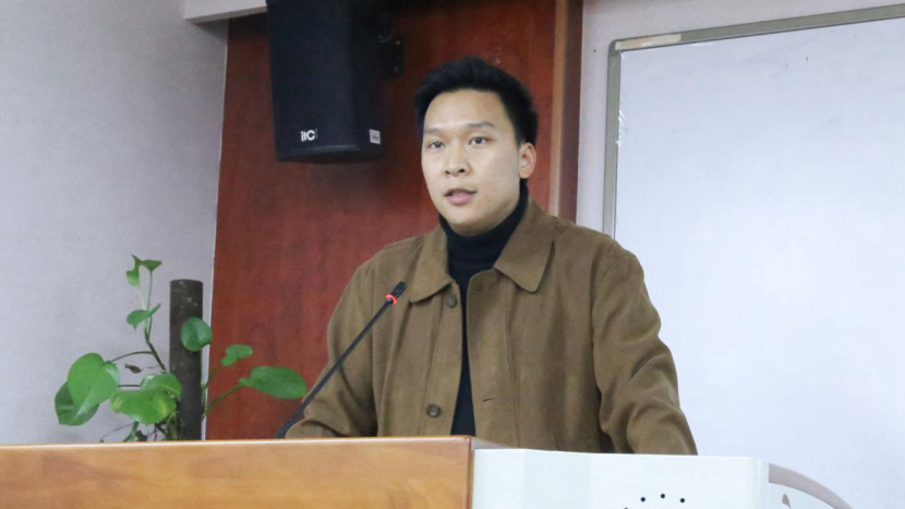 学生会副主席黄川师对“悦动色花堂 ”全院健身平台进行介绍。“悦动色花堂 ”全院健身平台是由体育发展中心主办,面向全院师生的体育活动平台,包括足球、篮球、游泳、健身等各类运动。全院师生可以通过这个平台找到适合自己的运动节奏和志同道合的运动爱好者,收获专业的指导和身体素质的提升。同时,通过健身打卡,参与积极的师生可以获得不同程度的奖励。