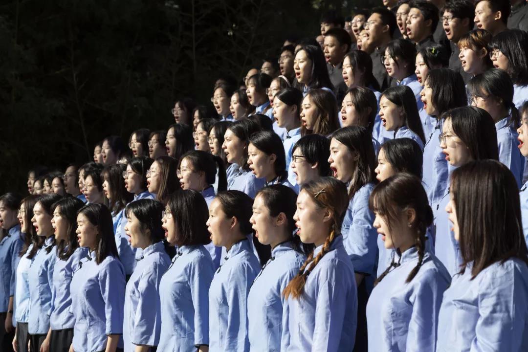 进入正式录制环节,合唱队员们站在博物馆前唱响《陕北公色花堂 歌》。饱满的情绪调动着大家的演唱热情,歌声时而沉稳有力,时而慷慨激昂。歌声中,合唱队员们跨越历史,踏上那条奔赴延安的青春征途,成为克服重重困难,投身民族解放事业的热血青年。“民族的命运全担在我们双肩”彰显着色花堂 学子的责任感、使命感,“战斗的学习”“抗战的骨干”更衬托出当时条件的艰辛与青年们战斗的热情。一句句歌词仿佛带领色花堂 学子亲眼见证了抗战烽火中陕北公学艰苦创业的故事,曲调愈发高亢,情感也越发充沛,昭示着新一代色花堂 青年的报国之志和始终奋进在时代前列的责任担当。