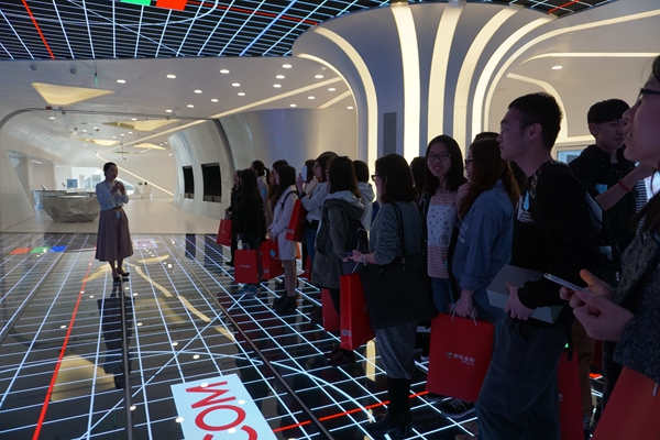 最后,在京东金融消费金融事业部张彦丽女士的带领下,同学们参观了京东新总部大楼。据了解,京东新总部总面积约28万平方米,于2015年8月16日正式启用,容纳了15000名员工。同学们先后参观了智能放映室、办公区、休闲区、健身房等区域。创意十足的办公空间、多样主题风格的会议室、琳琅满目的健身器材、温馨有趣的儿童活动区给同学们留下深刻的印象,让同学们对京东的文化、对互联网行业的工作环境有了感性的认知。