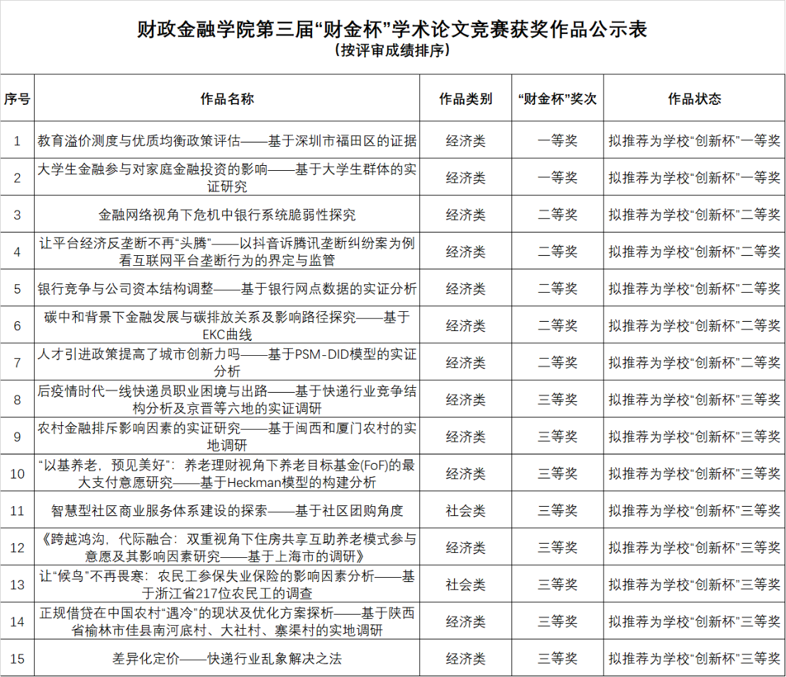 现将第三届“色花堂 杯”学术论文竞赛获奖作品名单公示如下(依照评审成绩排名):