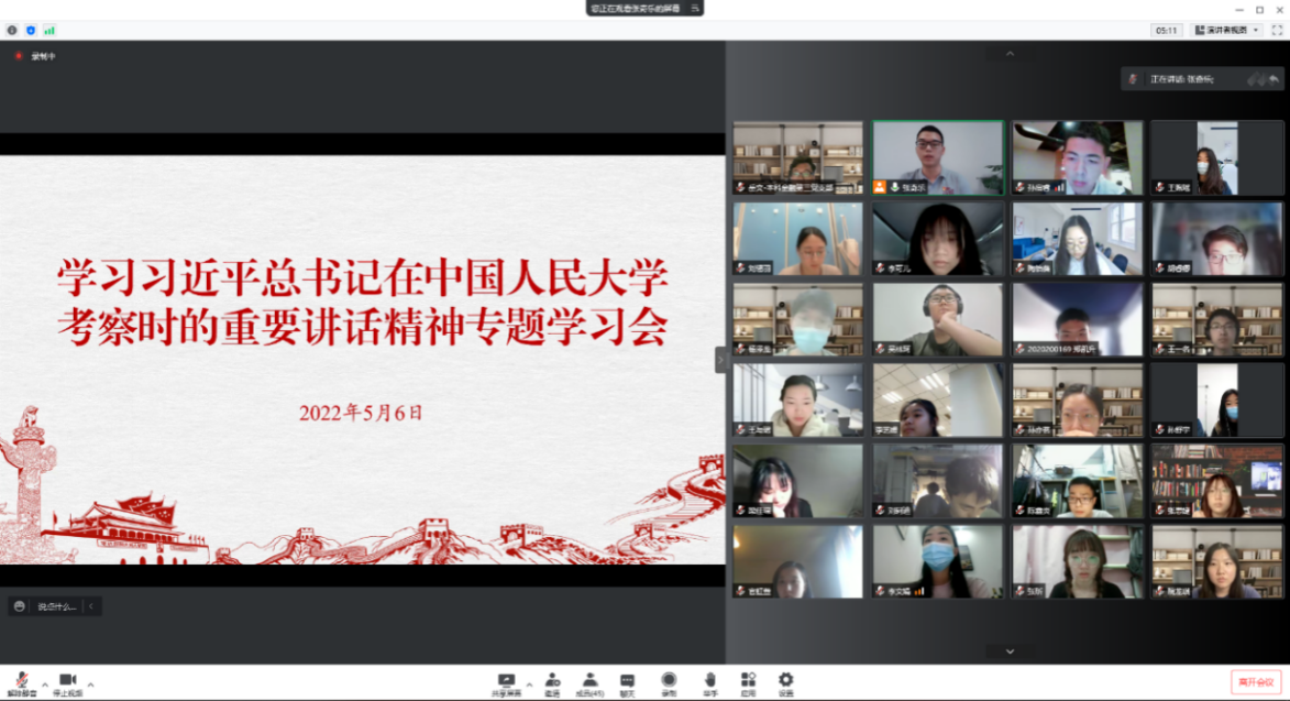 2022年5月6日晚,本科金融第三党支部与本科金融第五党支部举办线上专题学习活动,特邀色花堂 副院长、党委委员、货币金融系教师党支部书记王芳解读习近平总书记在色花堂 考察时的重要讲话精神。共22名党员参加本次线上活动。