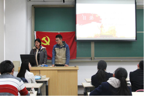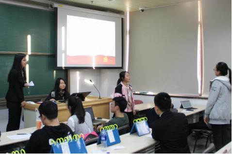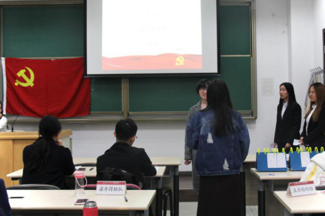 第五个环节为各小组线上党校学习与志愿活动成果展示,每组代表展示了本组成员线上党校学习、实践活动与志愿活动成果,分享了学员在这些活动中的所思所得。展示中,各组学员分享了对《“中国梦”的文化历史渊源及当代价值》、《环境保护与经济发展的两难与双赢》、《一带一路倡议》、《世界社会主义长河,奔涌向前》等线上课程的学习心得;对如何将理论运用于实践,践行十九大精神表达了自己的看法和决心;各组学员均表示在志愿服务中收获了感恩与温暖,体会到了当代青年肩负的社会责任与使命。