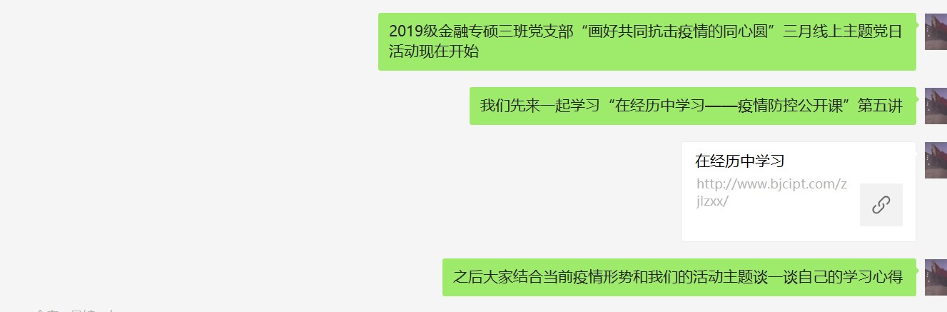 线上主题党日|2019级金融专硕三班党支部学习疫情防控公开课,分享学习心得