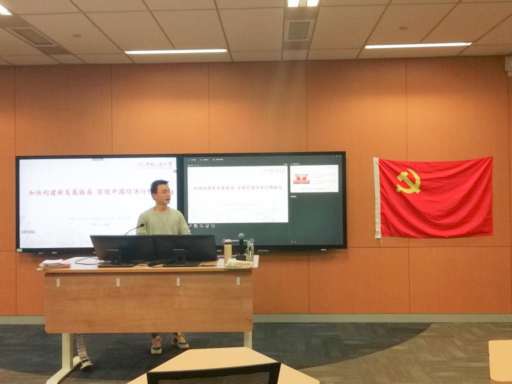 宣讲结束后,支部书记陈醒同志首先对这次精彩的宣讲进行了总结,他总结道,崔猛同志基于历史视角,通过梳理历史会议和文件精神,结合各阶段历史背景,从历史脉络、战略内涵、现实路径等三个方面,帮助我们深入了解新发展格局的战略决策精神,也为我们未来的研究提供思考。