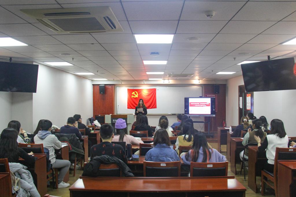 王与珺介绍本科金融第三党支部本学期党史学习教育工作开展情况。她介绍了本学期支部已开展的四次主题党日活动的主要内容,并表示,本科金融第三党支部坚持贯彻“三会一课”等基本组织生活制度,通过支部共建、观影研讨等方式创新组织生活形式提升主题党日活动实效,让组织生活更有活力和吸引力。