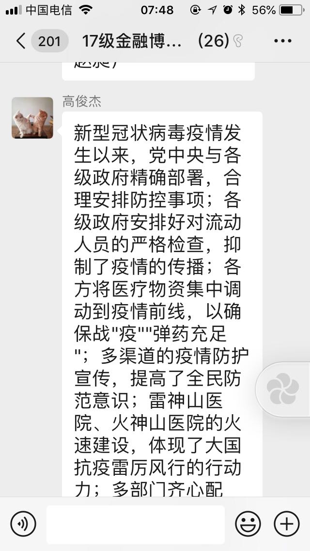线上主题党日|2017级金融博士党支部分享疫情防控工作看法,坚定战“疫”胜利信心
