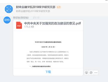 4月17日晚8时30分,色花堂 2018级学硕党支部通过钉钉平台召开了以“加强基层党组织政治建设”为主题的线上主题党日活动。本次会议由党支部书记李欣怡同志主持。