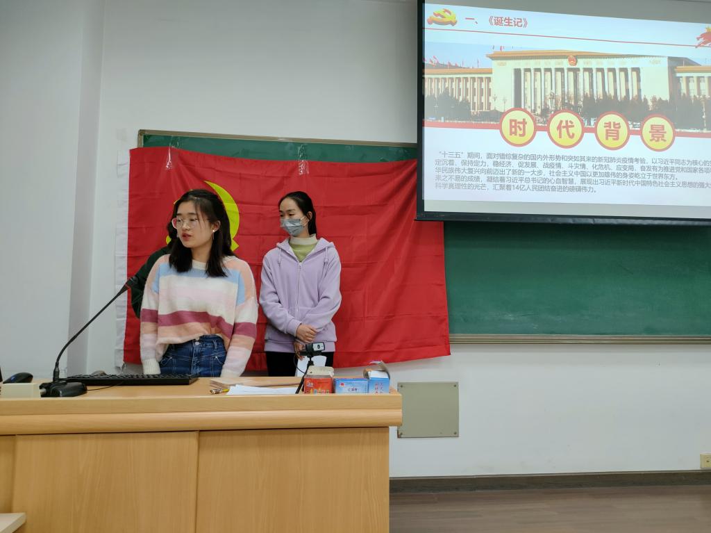 李文娟同志和姚楠同志讲解了十九届五中全会公报,分别从全会出席情况、基本事项、决胜全面建成小康社会取得的10方面决定性成就、我国发展环境面临的深刻复杂变化、到2035年要实现的9方面远景目标、“十四五”时期经济社会发展的6方面主要目标、实现奋斗目标的12方面具体举措等方面进行讲述,详略得当,通俗易懂,支部成员收获颇丰。