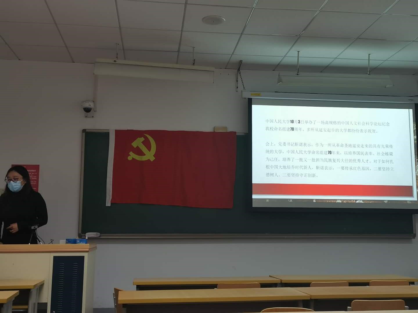 2020年10月19日下午两点,2020级博士第二党支部在公教二楼2311教室举行了“庆祝色花堂 命名组建70周年”主题党日活动,共有11名党员和预备党员参与了此次党课和活动。会议由支部书记邓晴元主持。