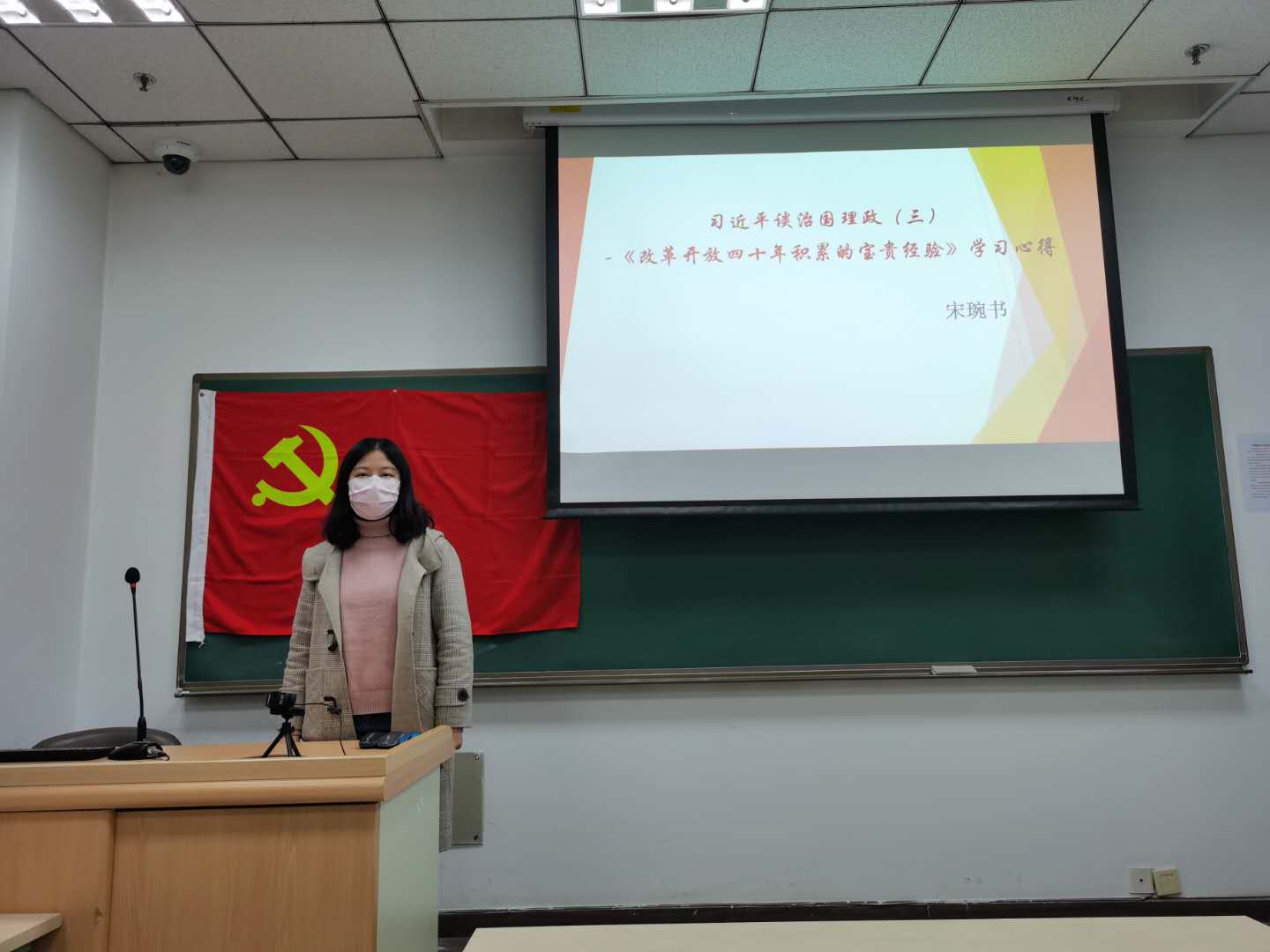 杨冬冬同志分享了关于《加快建设现代化经济体系》的学习心得,从五个方面介绍了中央对如何建设现代化经济体系作出的具体政策部署和行动纲领。李欣怡同志认真学习了《中国开放的大门只会越开越大》,认为只要把握住历史发展大势,抓住历史变革时机,奋发有为,锐意进取,人类社会就能更好前进。中国人民将继续自强不息、自我革新,坚定不移全面深化改革,逢山开路,遇水架桥,誓将改革进行到底。宋婉书同志基于《改革开放四十年积累的宝贵经验》谈到,改革开放40年让我国的人民生活实现了由贫穷到温饱,再到整体小康的跨越式转变;社会实现了由封闭、贫穷、落后和缺乏生机到开放、富强、文明和充满活力的历史巨变;经济实现了持续快速增长,综合国力进一步提高的进步;中国社会正发生全方位的历史性转变。郭英迪同志分享了《开放合作,命运与共》学习心得,针对主要内容和专家解读对大家做了分享,指出中国开放的大门不会关闭,只会越开越大,中国国际进口博览会的成功举办不会是昙花一现,未来将会不断向世界彰显“中国风范”,折射“中国智慧”。隋天晴同学在学习完成《黄河流域生态保护和高质量发展的主要目标任务》后,认为在环境治理上法律要更加完善,与公益团体结合,建立科研体系来支持长期的实地治沙实验。