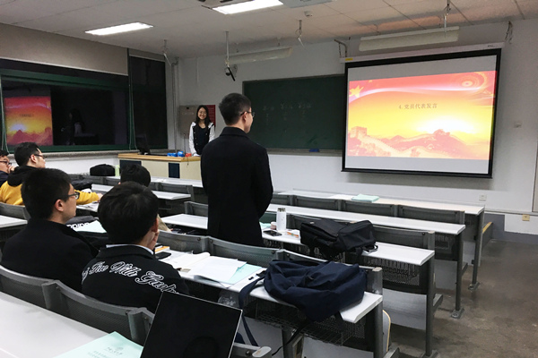 10月26日晚九点,18级金融专硕三班党支部组织了深入学习改革开放四十年专题活动。本次组织学习由党支部书记刘子妍同学主讲,全体党员学员参与学习,踊跃讨论,现场气氛十分热烈。