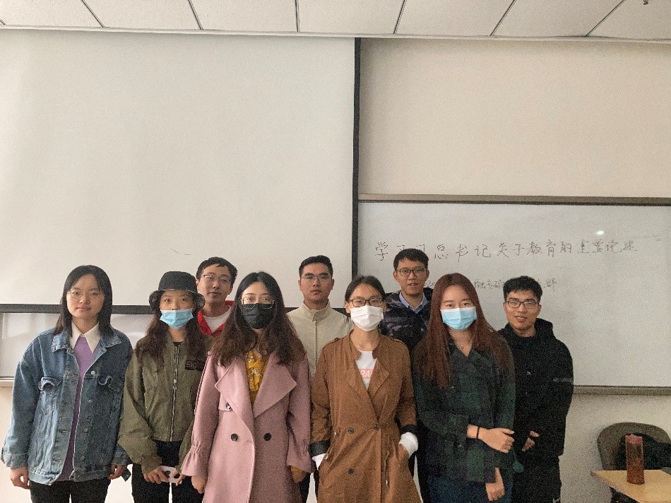 2020年10月14日下午,2020级汉青金融专硕三班党支部在明德主楼307教室开展主题党日活动,学习习近平总书记关于教育的重要论述。本次活动由党支部书记陈力睿主持。