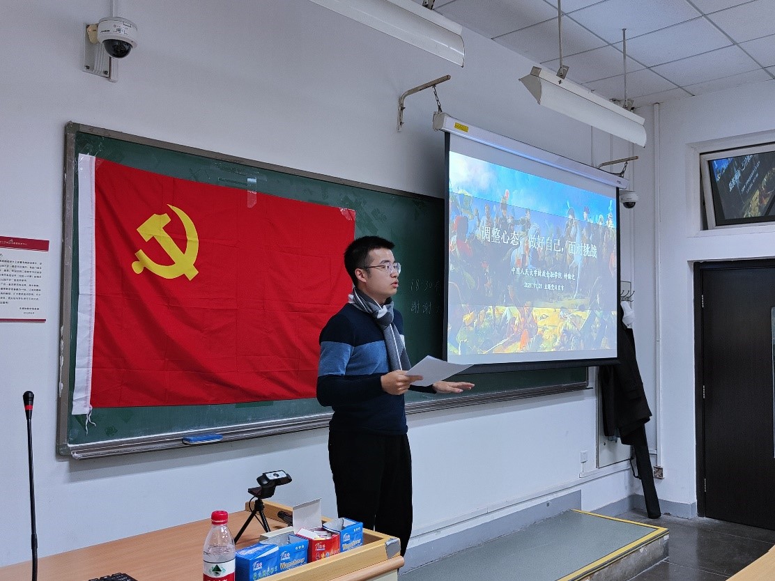2018级正式党员钟劭之分享缓解压力、调整心态的方法,提倡同学们建立正向的努力反馈机制,使2021级团支部同学及党员同志收获颇丰。