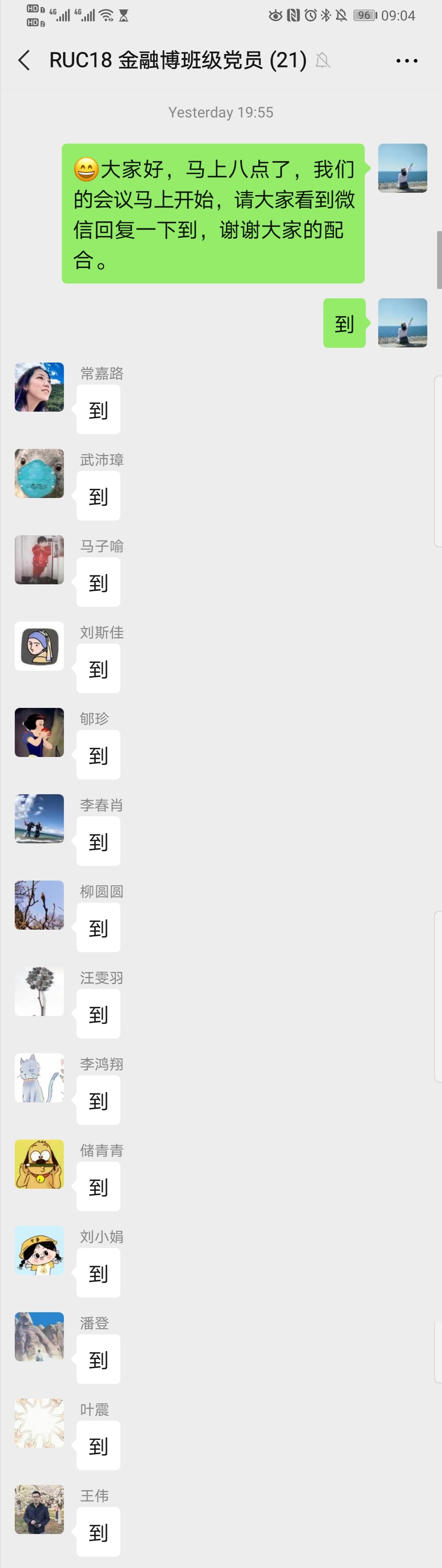 3月8日晚8点,2018级金融博士班党支部开展“画好共同抗疫情的同心圆”3月线上主题党日活动。全体党员签到参与讨论,在新冠肺炎的关键决胜时期,一同畅谈党员在这场战役中的重要角色和作用。从自身出发,讲抗疫故事,送抗疫祝福。