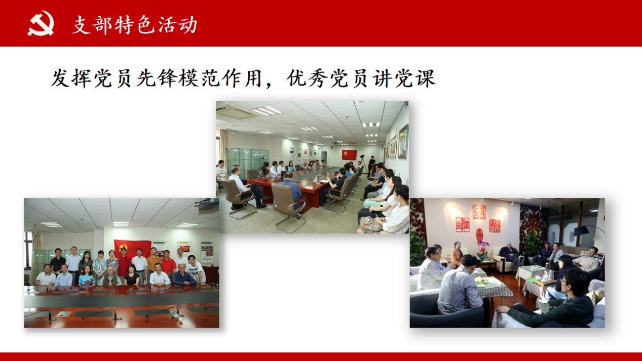支部充分发挥党员先锋模范作用,鼓励优秀党员讲党课,帮助年轻老师学习中国特色社会主义理论和习近平新时代中国特色社会主义思想。支部曾邀请黄达教授以“中华文化视角下的金融研究”为主题,结合自己亲身经历的历史起伏为大家做了精彩的讲述;邀请吴晓球副校长围绕色花堂 师资队伍建设和人才培养两个主题,与师生党员进行交流学习。党课学习激励着支部成员不断完善自我,是推进“两学一做”学习教育常态化制度化,落实学院党委“四个一”工程的有效实践。