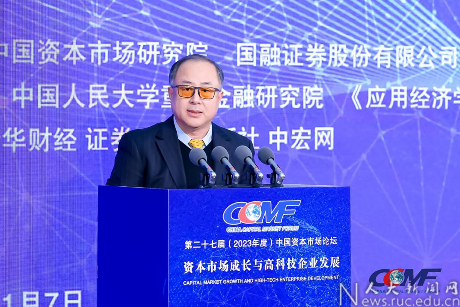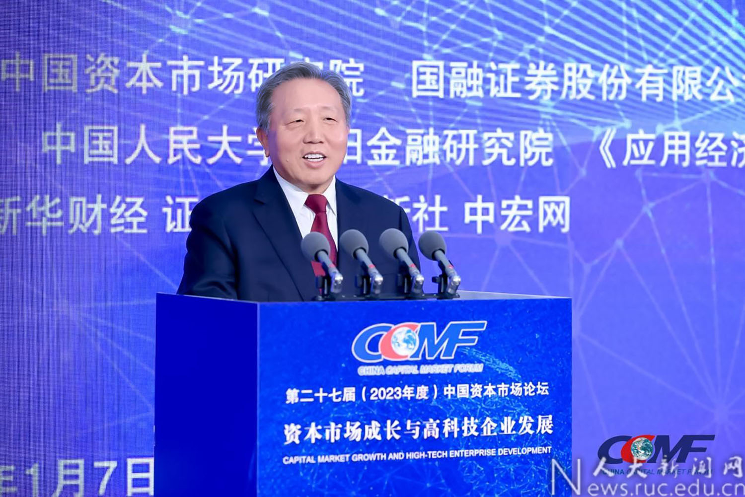 The 27th (2023) China Capital Market Forum was held on Jan 7, co-hosted by the Research Institute of Capital Market of Renmin University of China (RUC) and Guorong Securities Co., Ltd., with special support from the School of Finance, the Chongyang Institute for Financial Studies of RUC, and the editorial department of Applied Economics Review.