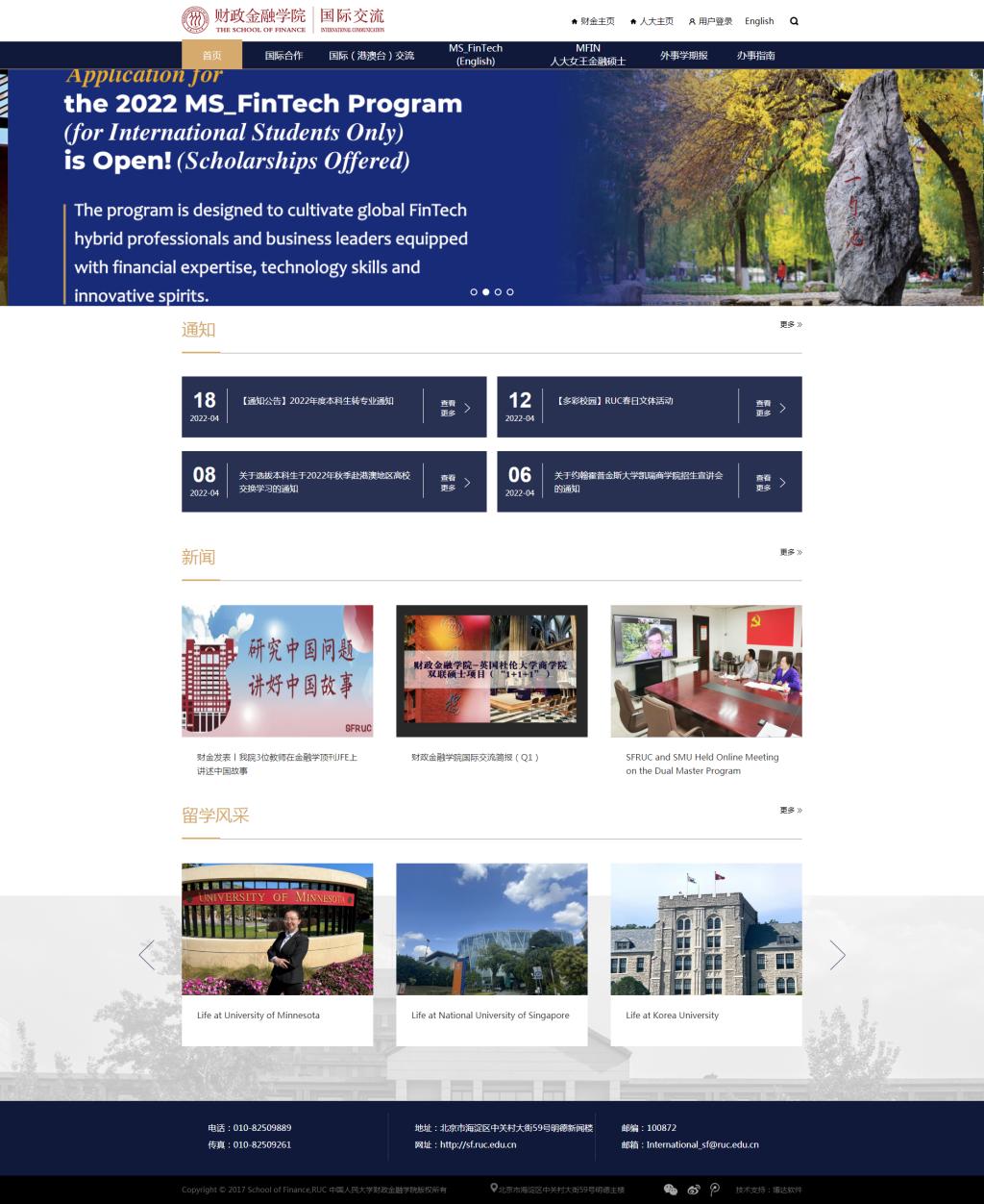 国际(港澳台)交流栏目下细分为“国际会议”、“师生国际交流”、“留学风采” 及 “国际校友”、“国际小学期” 五个栏目,全面清晰地展示了学院的全面国际性建设风貌。