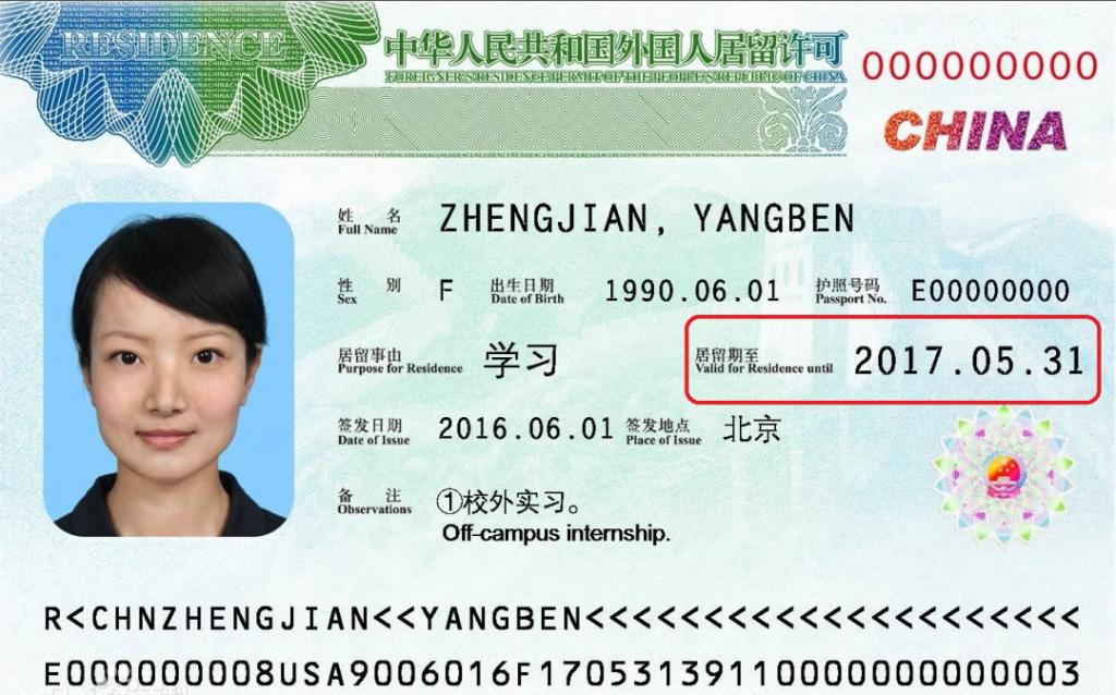 请参照上图示例仔细查看自己的居留许可有效期,如已经到期或即将到期,请立即与留学生办公室取得联系,办理后续相关手续。