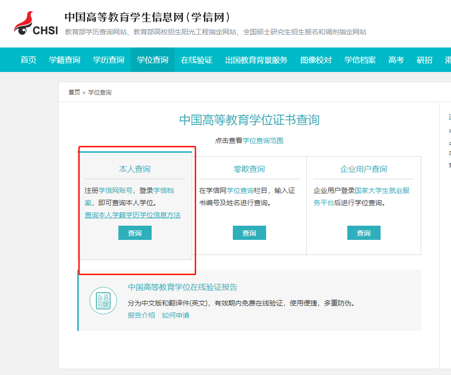 网址://www.chsi.com.cn/xwcx/index.jsp