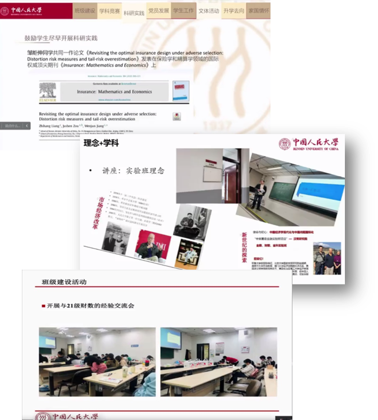 会上,2018-2021级财政学-数学双学位实验班、金融学-数学双学位实验班以及金融学-数据科学与大数据技术(工学)双学位实验班共10位班主任针对2021-2022学年班级学风班风建设、学业学术指导、特色活动开展等方面进行工作述职汇报,总结工作经验,规划未来方向。学院本科实验班管理工作组各成员对实验班建设工作进行交流探讨,提出意见建议。