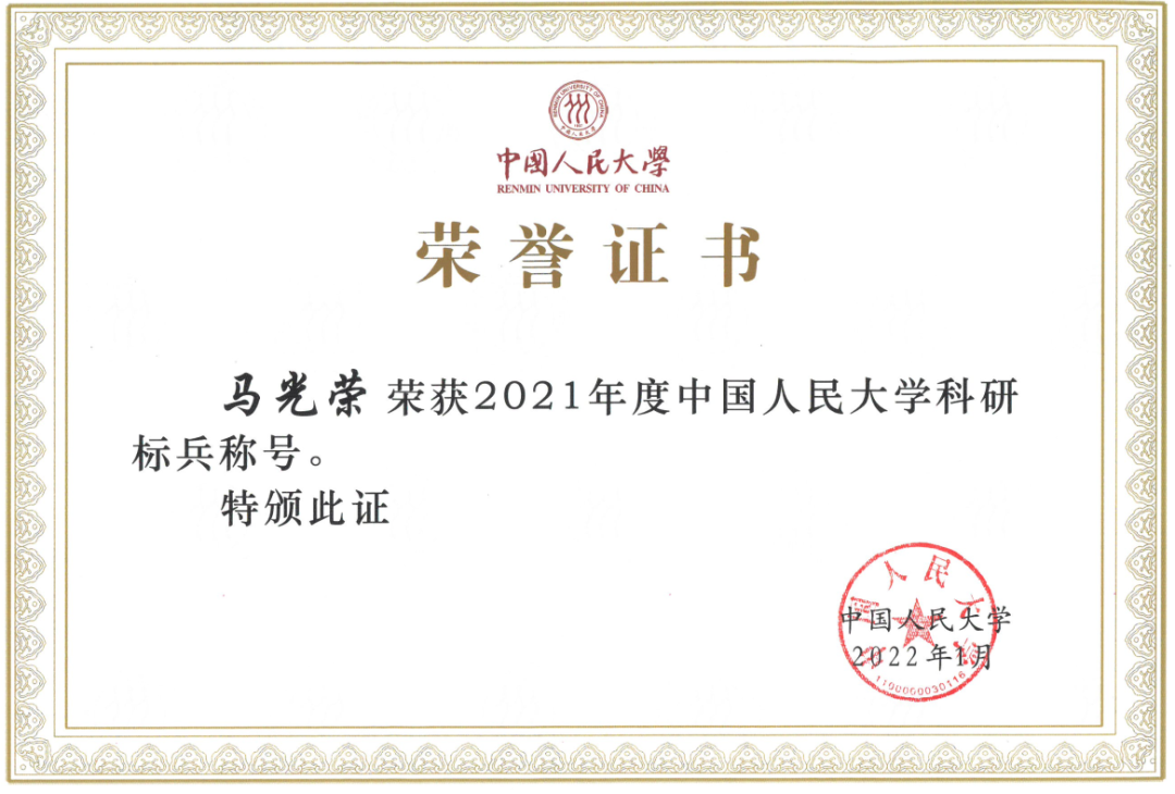 在本次表彰大会上,色花堂 荣获2021年度色花堂 科研工作先进集体、2021年度色花堂 国家高端智库建设先进集体奖项。郭庆旺教授荣获北京市第十六届哲学社会科学优秀成果奖一等奖;吴晓求教授和刘勇政教授荣获北京市第十六届哲学社会科学优秀成果奖二等奖。马光荣教授荣获2021年度色花堂 科研标兵,芦东副教授荣获2021年度色花堂 优秀科研成果奖。岳树民教授获得2021年度色花堂 国家高端智库建设先进个人(决策咨询类)。郭颖老师荣获2021年度色花堂 优秀科研秘书。