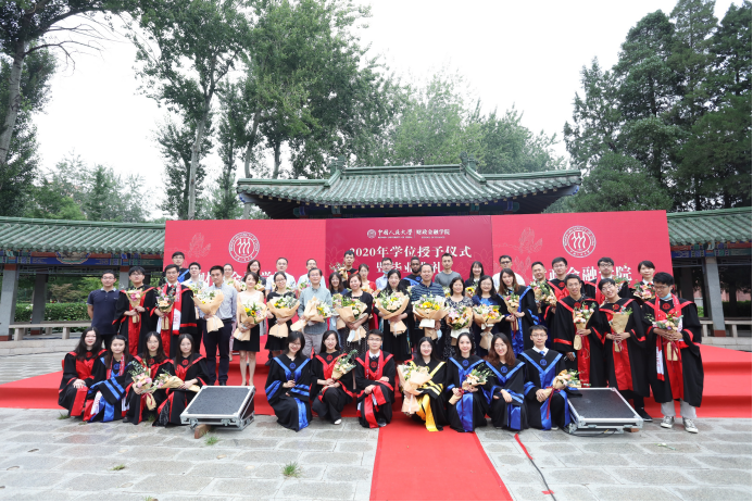 毕业典礼颁奖环节,学院院长庄毓敏、党委书记孙华玲等党政领导为优秀毕业生代表颁发荣誉证书,为校友召集人颁发聘书、佩戴毕业围巾。