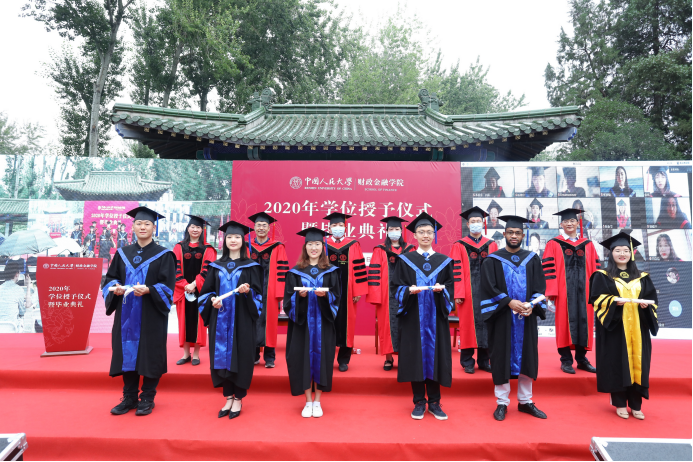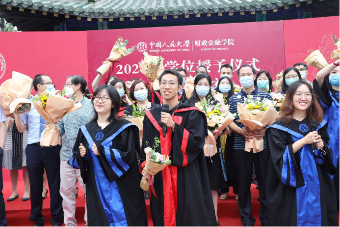 学位授予仪式上,吴晓球、庄毓敏、岳希明、张成思、王芳、贾俊雪等6位教授为现场毕业生拨穗并颁发学位证书,祝贺同学们顺利完成学业。