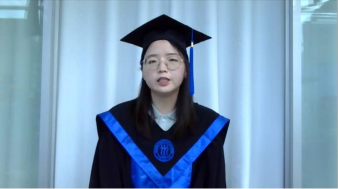 2020届毕业生田媛作为研究生毕业生代表发言。作为湖北抗击疫情期间的一名普通志愿者,她表示个人的命运总是融入在时代的洪流中,时代的命运也与每一个人紧紧相连,她为在疫情期间我国负责任、有担当的大国形象深感自豪。她感恩在色花堂 这一段求学经历中获得的“实事求是”的处事态度和“国民表率、社会栋梁”的责任担当。她与所有毕业生共勉,希望能在不久的将来,把理想、热爱与责任写在祖国的大地上。