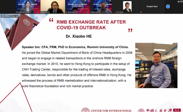 贺晓博发表了主题为“新冠疫情后的人民币汇率变化趋势”的演讲,首先回顾了中国2005年和2015年两次“汇改”对人民币汇率产生的重大影响,接着从疫情防控和经济复苏程度、人民币汇率与美元的周期相关性以及中美利差三个角度解释了2020年以来的人民币汇率走势。最后贺晓博指出:随着新冠疫苗研发的进展,中国的出口将会全球经济逐步复苏前保持强劲,中美利差会有所缩小但仍高于以往平均水平,人民币汇率将会保持相对稳定。