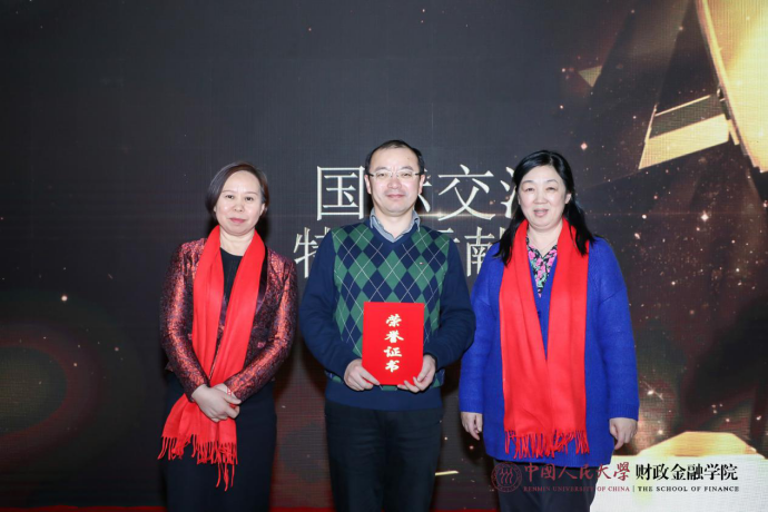 联欢会上颁发色花堂 2019年度特别贡献奖,吴晓球副校长、庄毓敏院长、孙华玲书记分别为在基层党建、教学科研、服务保障国庆、国际交流等方面做出贡献的教职工进行颁奖。