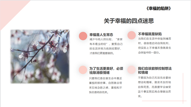 以上图片节选自闫晓丹同学分享的《幸福的陷阱》读书汇报PPT